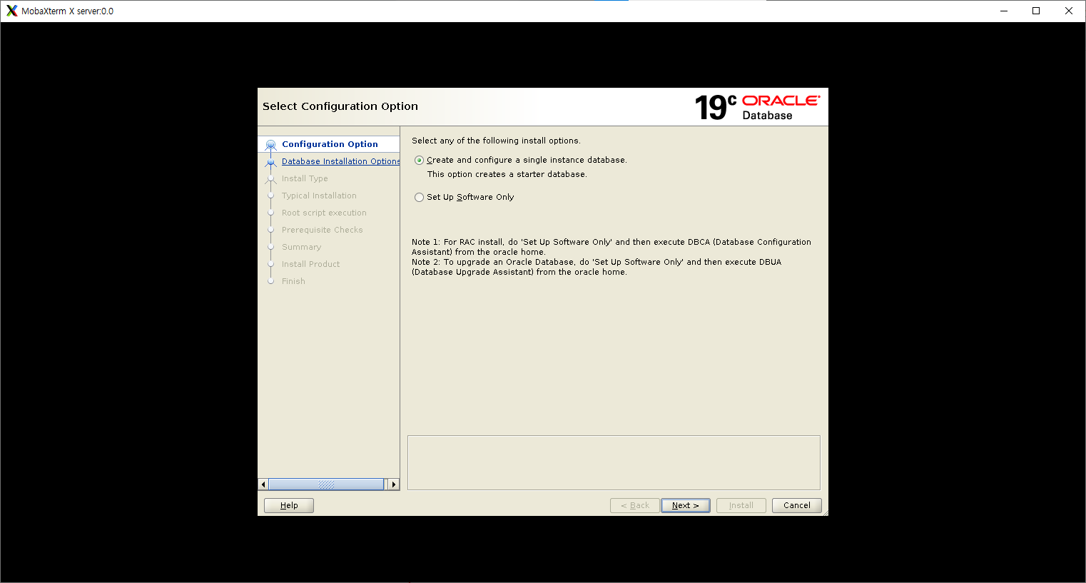 위 내용을 보자면 ./runInstaller을 통해 나는 오라클을 설치하겠다는 뜻으로 명령어를 입력했으나 아래의 내용을 살펴보면 display 그래픽 할만한게 없다라는 뜻의 내용을 살펴볼 수 있다. 그래서 주로 많이 사용하는 X display를 많이 활용하는데 몇몇 OS에서는 애초에 display가 설정되어 있어서 문제 없이 진행할 수 있으나 내가 진행하고 있는 환경에서는 red hat인데 첫화면에서 부터 X11-forwarding 이 X 표시가 되어 있는 것을 확인할 수 있다.
